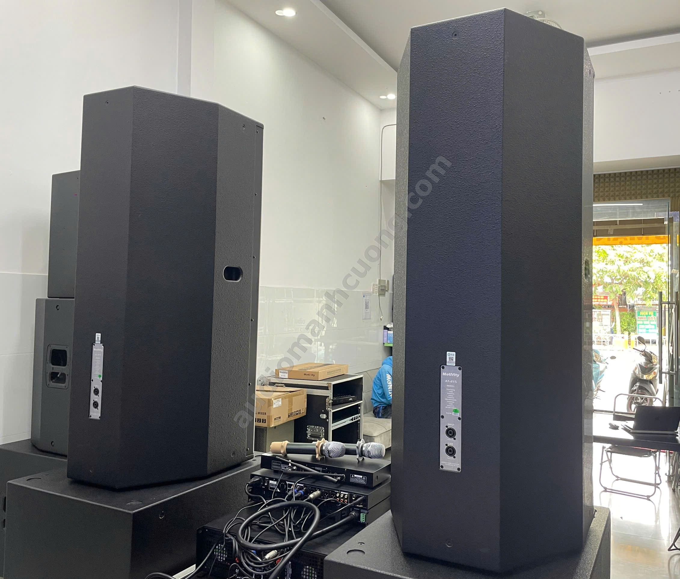 Loa Full đôi Motivity AT215: 3 đường tiếng, bass đôi 15”, công suất lớn, độ phủ âm rộng.