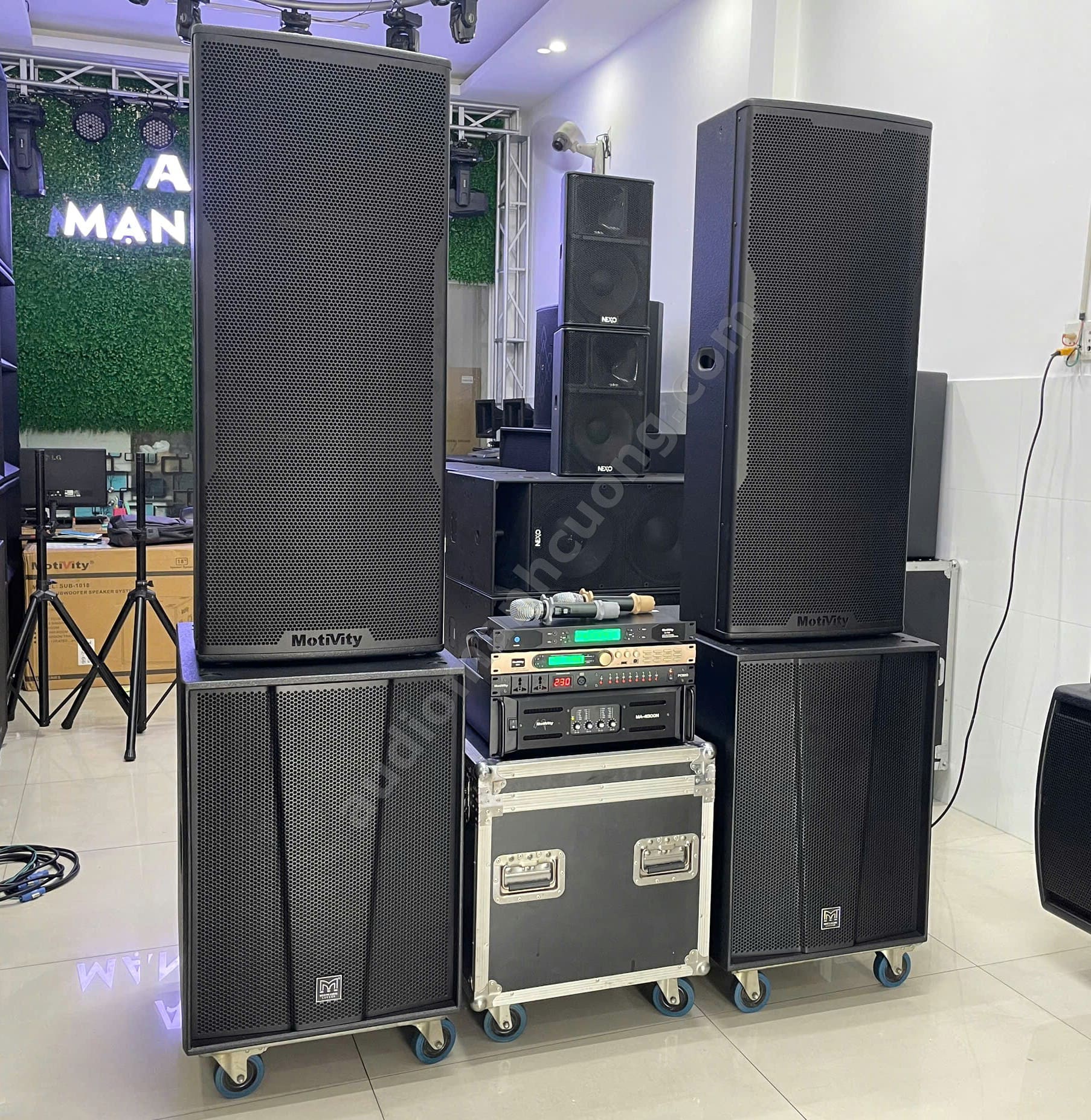 Với sự kết hợp của loa full đôi 3 đường tiếng, sub hơi 50 công suất lớn, cùng hệ thống vang số – cục đẩy – micro không dây Motivity chính hãng, bộ dàn này đáp ứng đầy đủ các tiêu chí: âm thanh bùng nổ – hát nhẹ tiếng – bass chắc uy lực – độ bền cao.