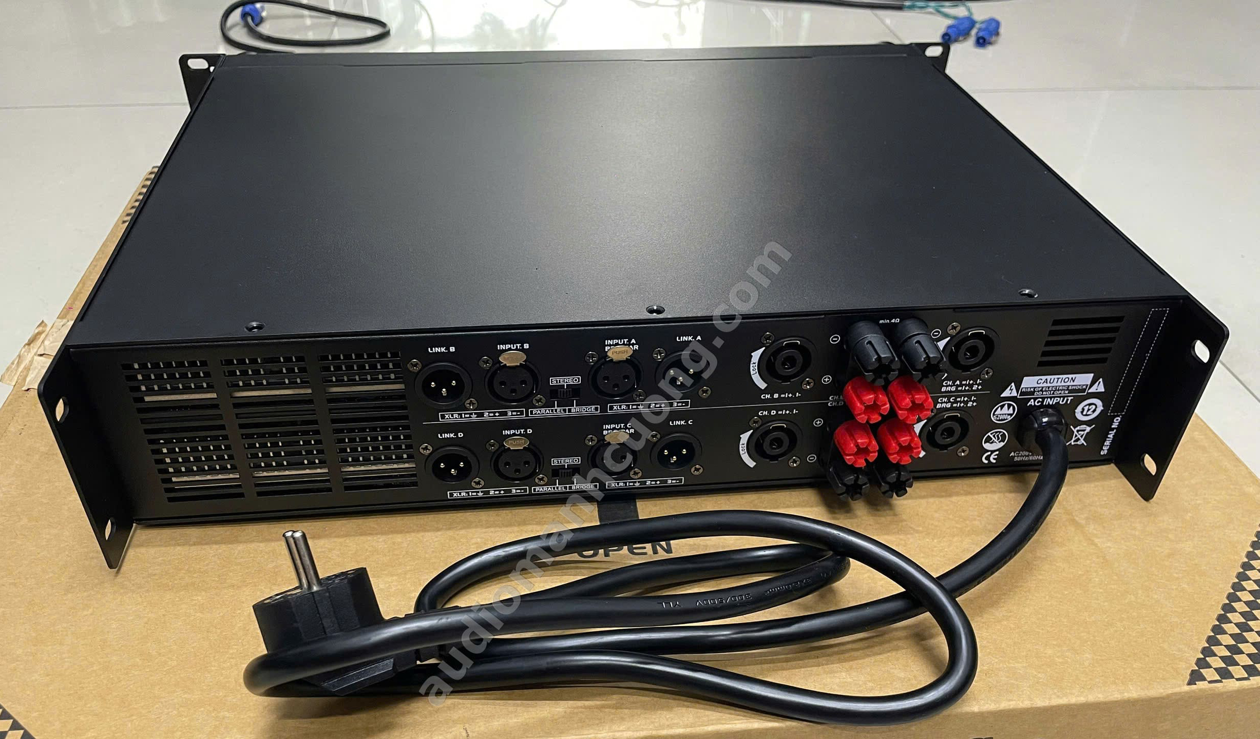 • Stereo 4Ω: 1800W/kênh