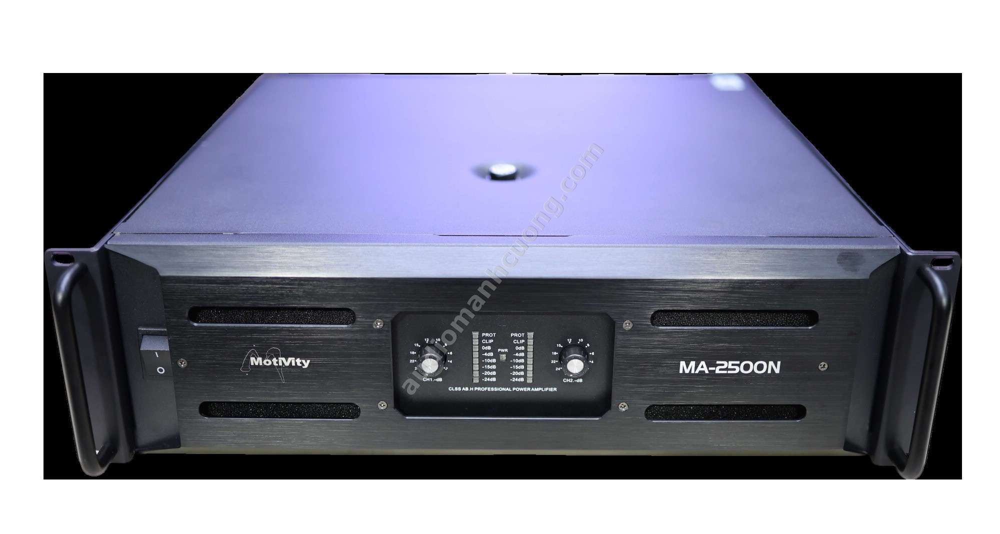 MotiVity MA2500N – cục đẩy công suất mạnh mẽ 2500W/kênh, chuyên trị sub coil lớn 125–150, phù hợp cho sân khấu, karaoke kinh doanh, show âm thanh chuyên nghiệp.
