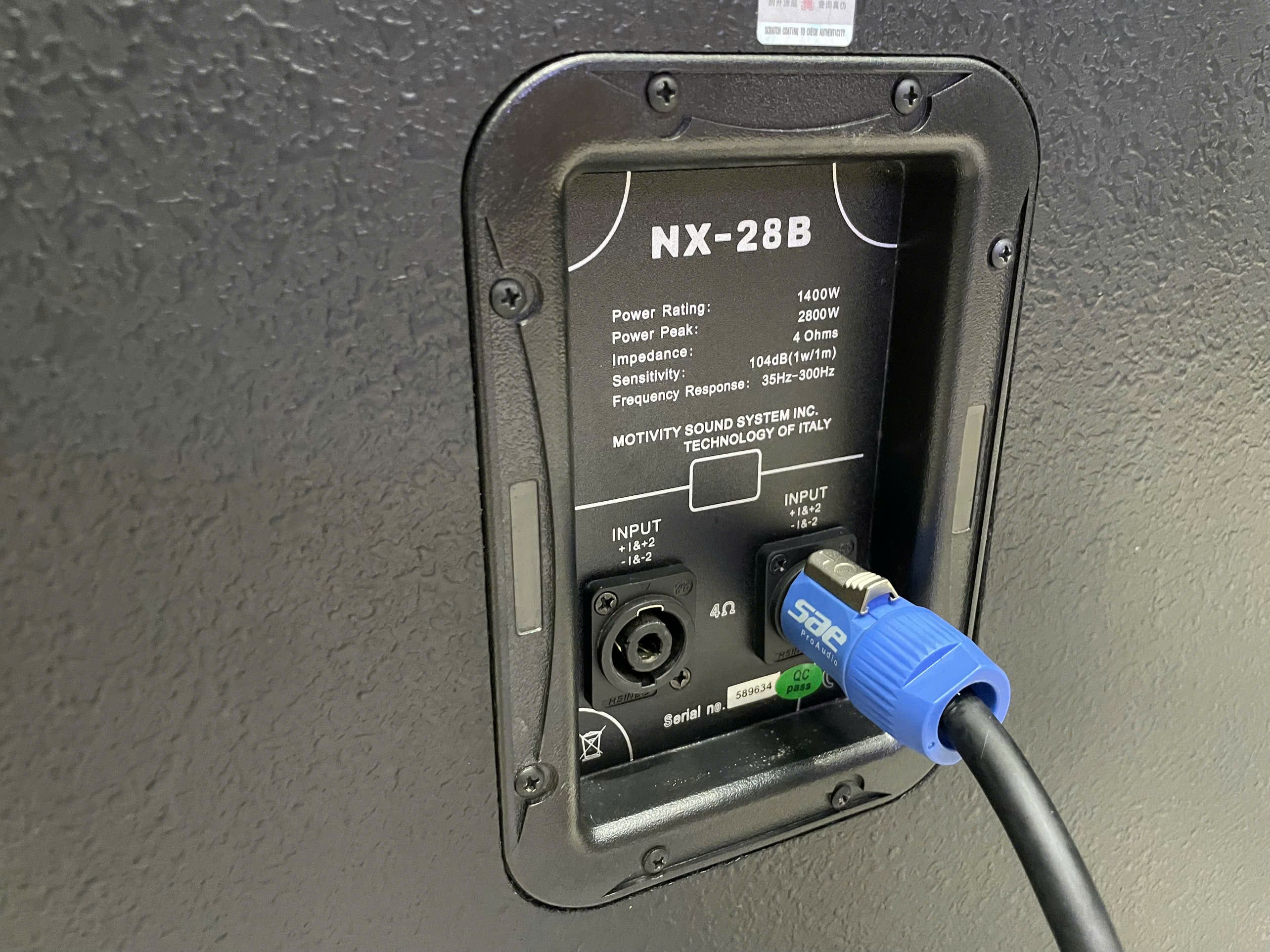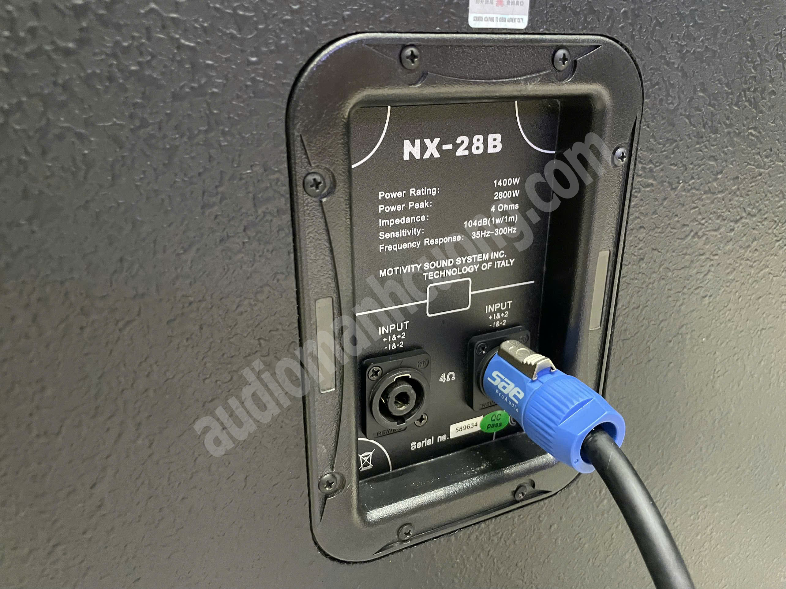1 Sub kép Motivity NX28B (bass 50) — hai sub giúp dải trầm dày, đánh sâu, “bạo lực” cho các thể loại nhạc điện tử/Remix/Pop.