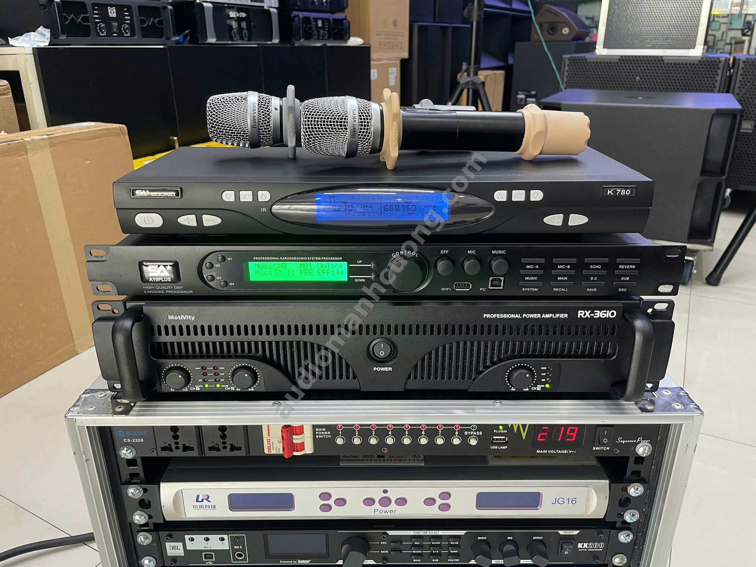 Trong nhịp sống hiện đại, một phòng karaoke cao cấp tại gia không chỉ là nơi giải trí đơn thuần — mà còn là không gian kết nối, là sân khấu để bạn tỏa sáng, là chốn thư giãn để giọng hát được nuông chiều từng nốt. Audio Mạnh Cường hân hạnh giới thiệu Bộ dàn karaoke gia đình phân khúc cao cấp — được ghép bởi những linh kiện chọn lọc: 1 cặp Motivity DX12 (bass 30) — giàu chi tiết và sáng tiếng; 1 Sub hơi AT15B (bass 40) — xuống sâu và căng tròn; Cục đẩy 3 kênh RX3610 — cung cấp nguồn năng lượng sạch không méo tiếng; Vang số SA A10plus — bộ não xử lý linh hoạt cho mọi giọng ca; và Micro không dây SA K780 — giúp bạn toả sáng tự nhiên, không lo rối dây.