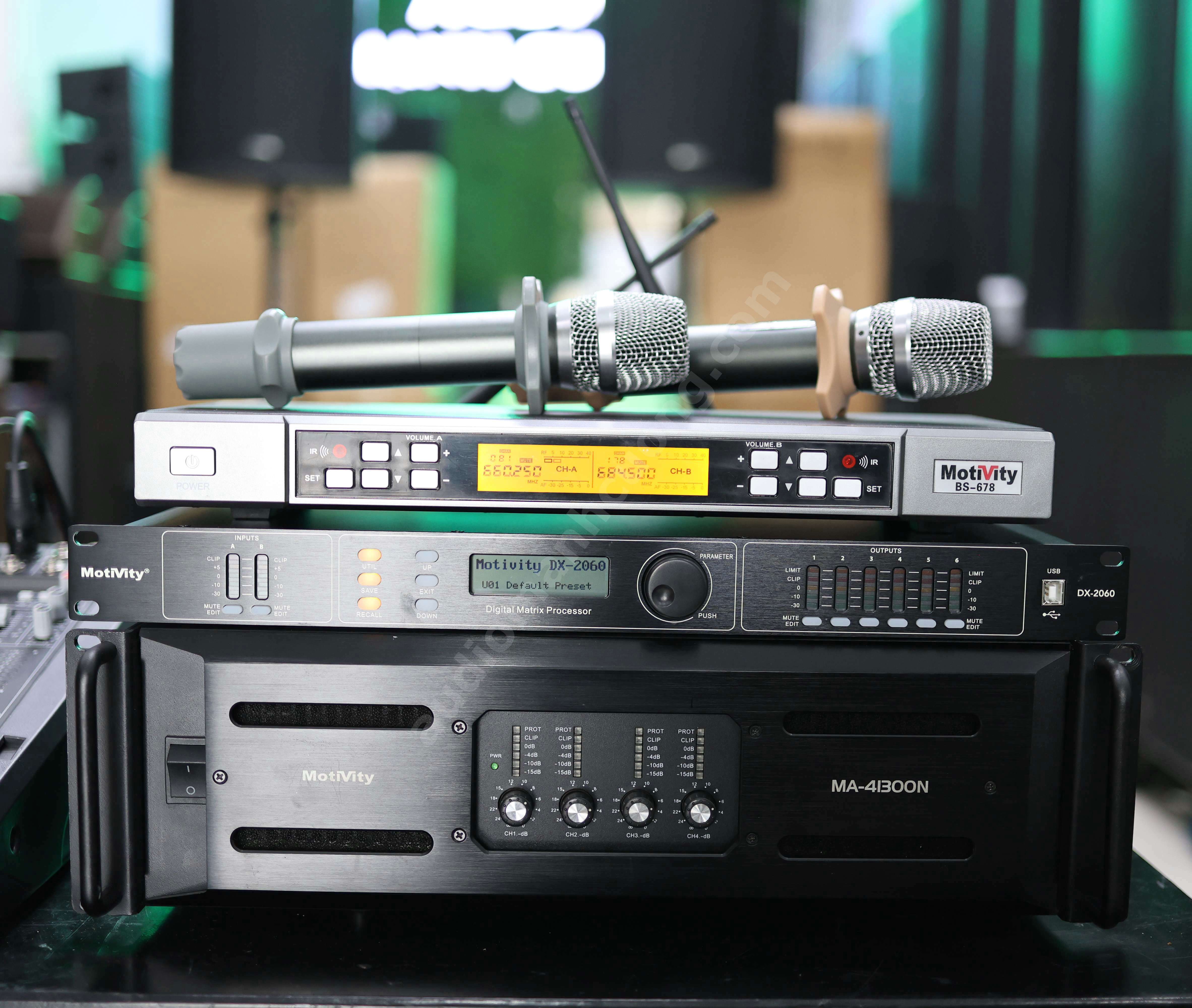 Audio Mạnh Cường xin giới thiệu đến quý khách hàng một combo dàn âm thanh chuyên nghiệp gồm các thiết bị đồng bộ từ thương hiệu Motivity, nổi tiếng với chất lượng ổn định, công suất mạnh mẽ và hiệu suất trình diễn vượt trội. Hệ thống này được cấu hình tối ưu dành cho các sân khấu ngoài trời, hội trường lớn, sự kiện ca nhạc, biểu diễn lưu động...