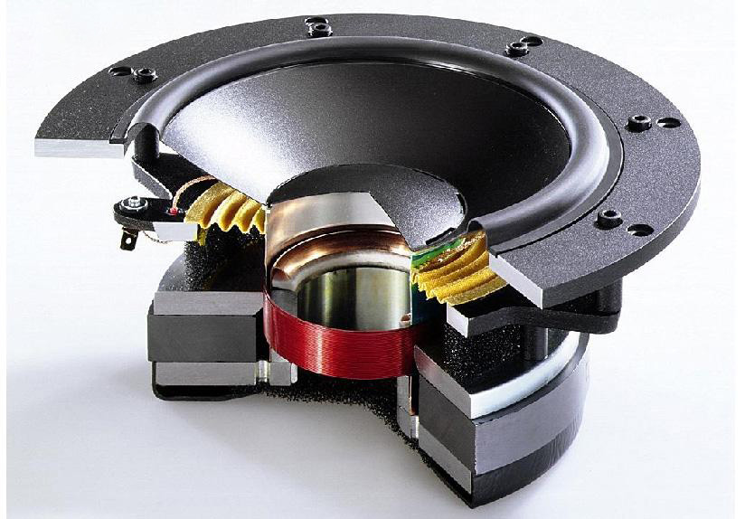 Nam châm được đặt cố định phía dưới khung loa. Khi dòng điện chạy qua côn loa sinh ra từ trường hút đẩy với nam châm tác động dây chuyền với những bộ phận khác của loa bass tạo thành những xung động âm thanh.