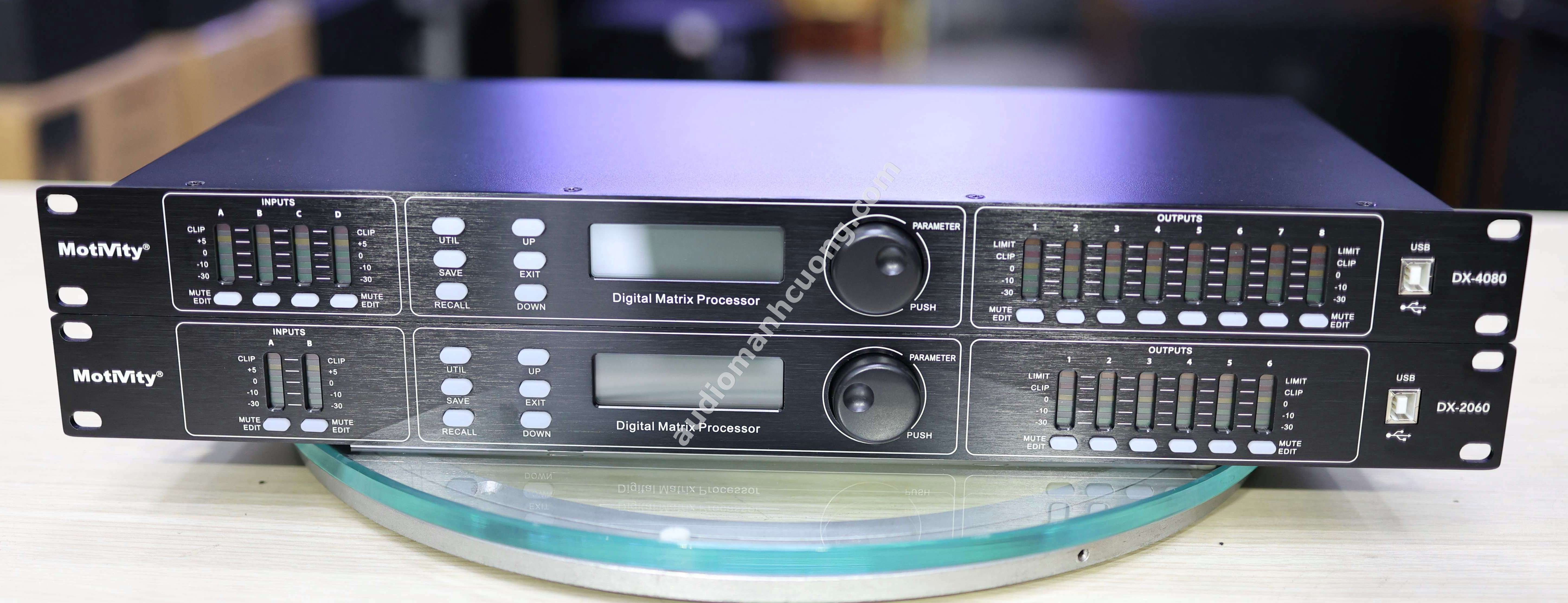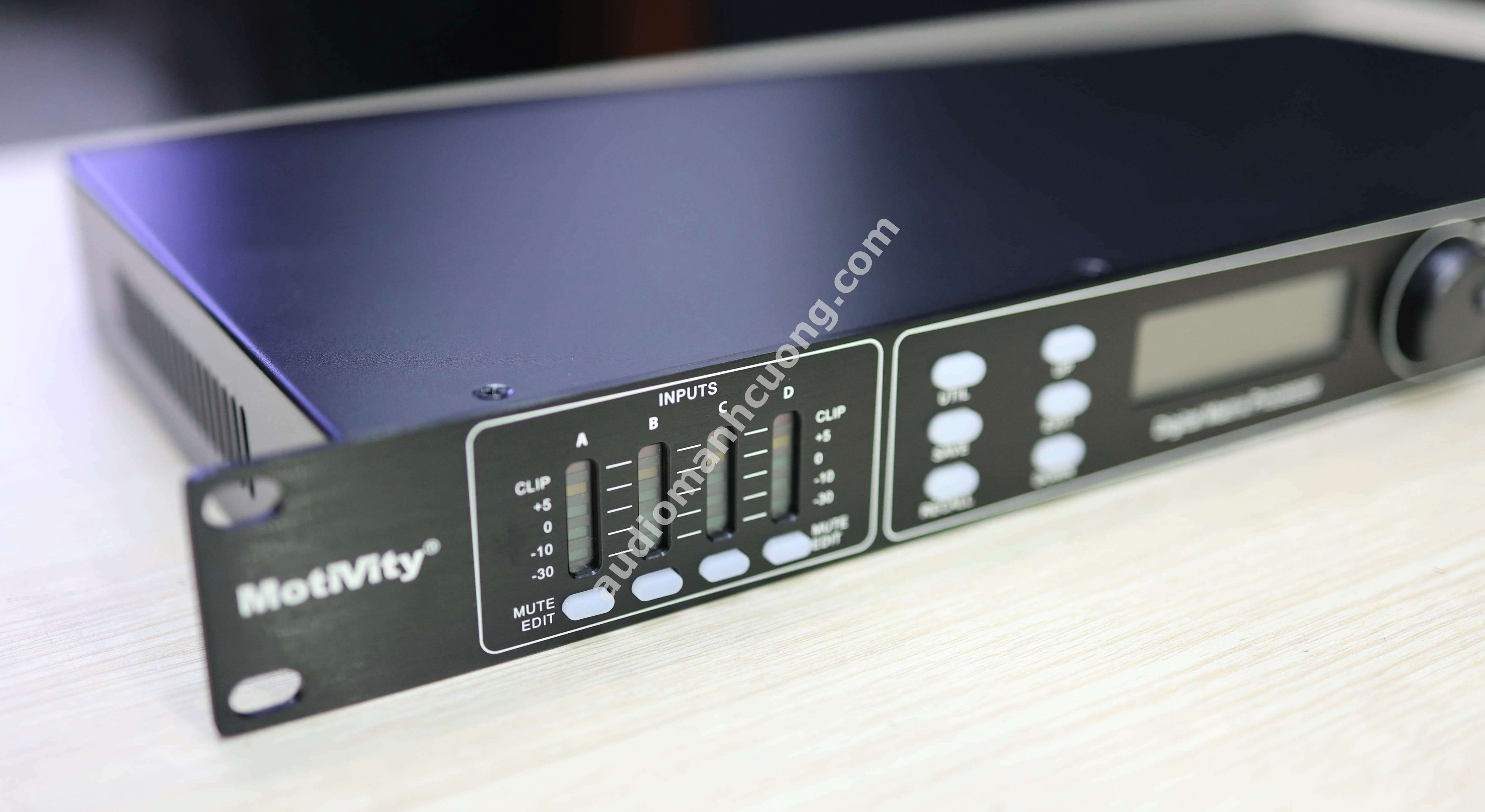 Motivity DX4080 là thiết bị xử lý tín hiệu số (digital crossover) chuyên nghiệp với cấu hình mạnh mẽ 4 đầu vào và 8 đầu ra. Sản phẩm được đánh giá cao trong các hệ thống âm thanh karaoke cao cấp, sân khấu biểu diễn, hội trường, phòng họp, sự kiện...