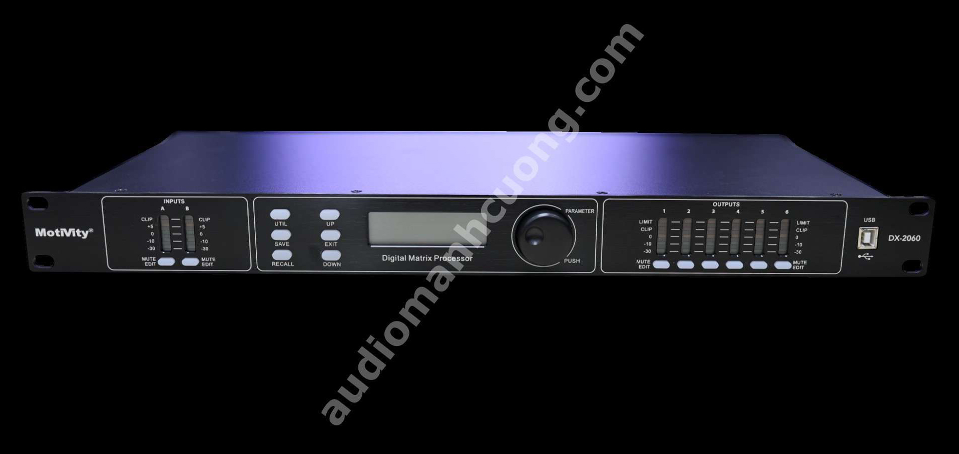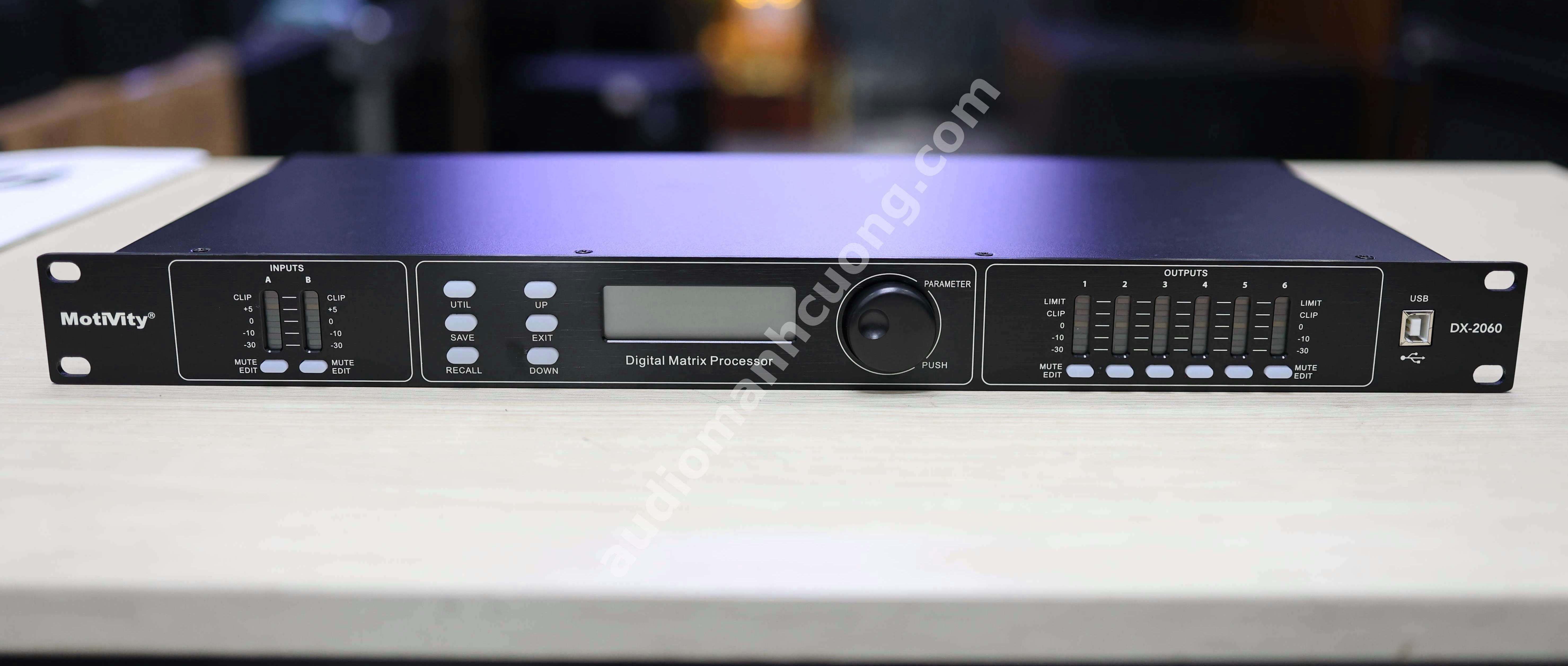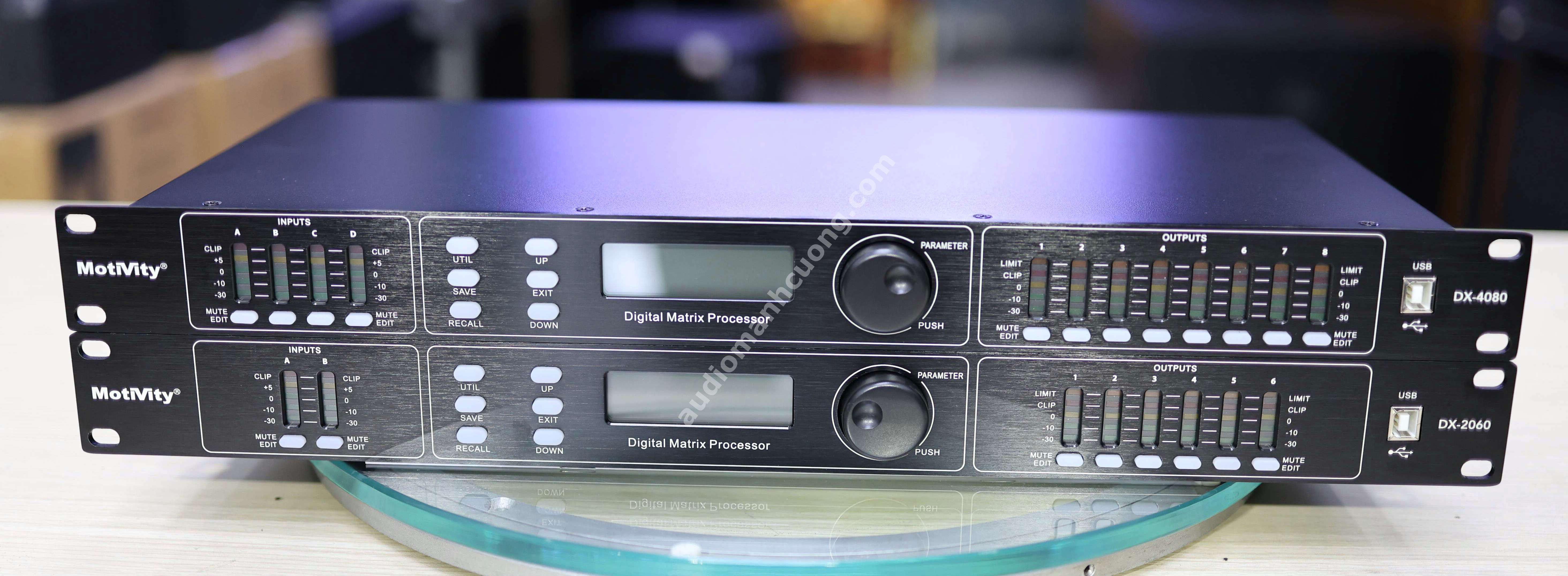 Motivity DX2060 (còn được gọi là DSP 206) là giải pháp all‑in‑one cho các hệ thống âm thanh chuyên nghiệp. Với cấu hình 2 input – 6 output, thiết bị cho phép phân tần tối ưu: ví dụ, đường sub/low sử dụng 2 đầu tín hiệu khác nhau, mid và tweeter mỗi loa có đường riêng. EQ parametric và graphic giúp tùy chỉnh âm sắc, lọc tạp âm hoặc điều chỉnh âm trường cho từng phòng.