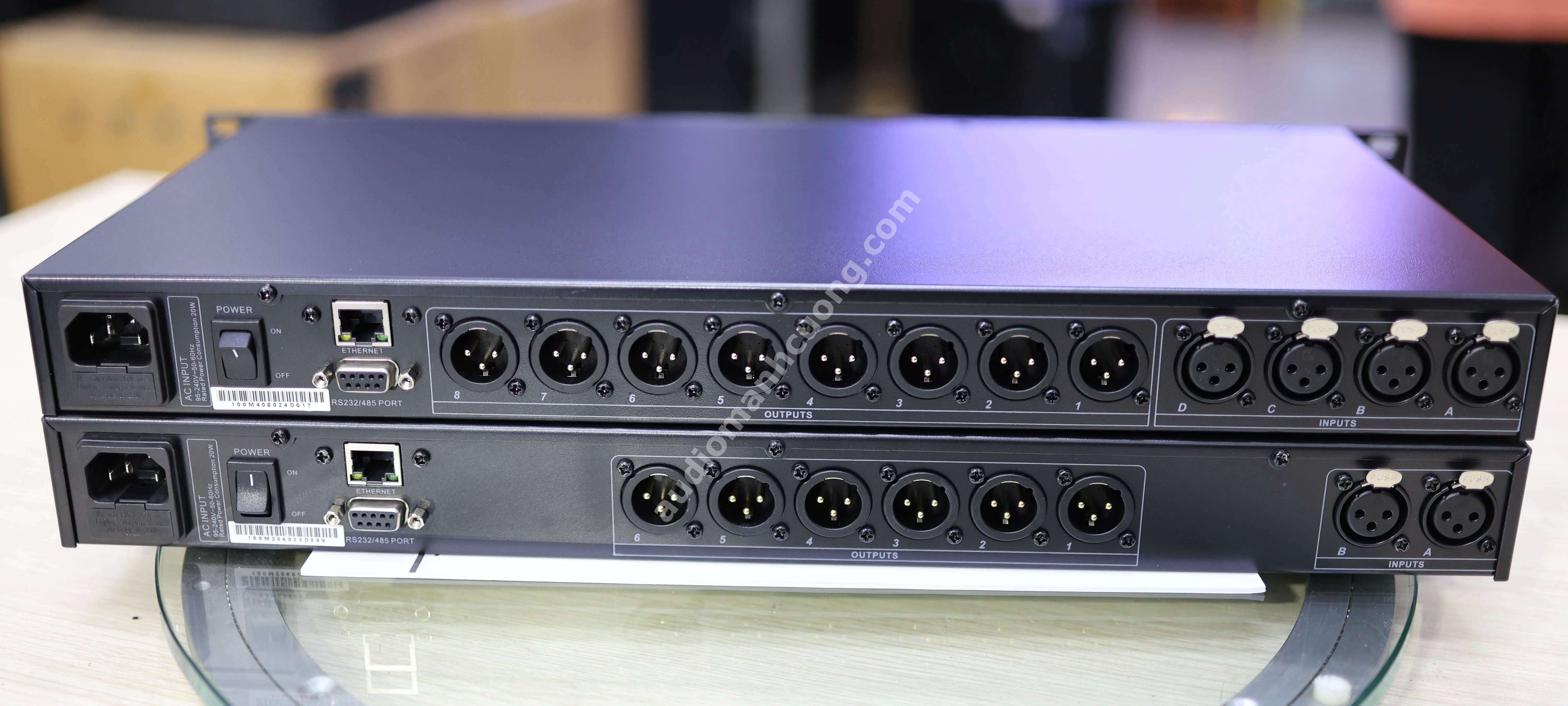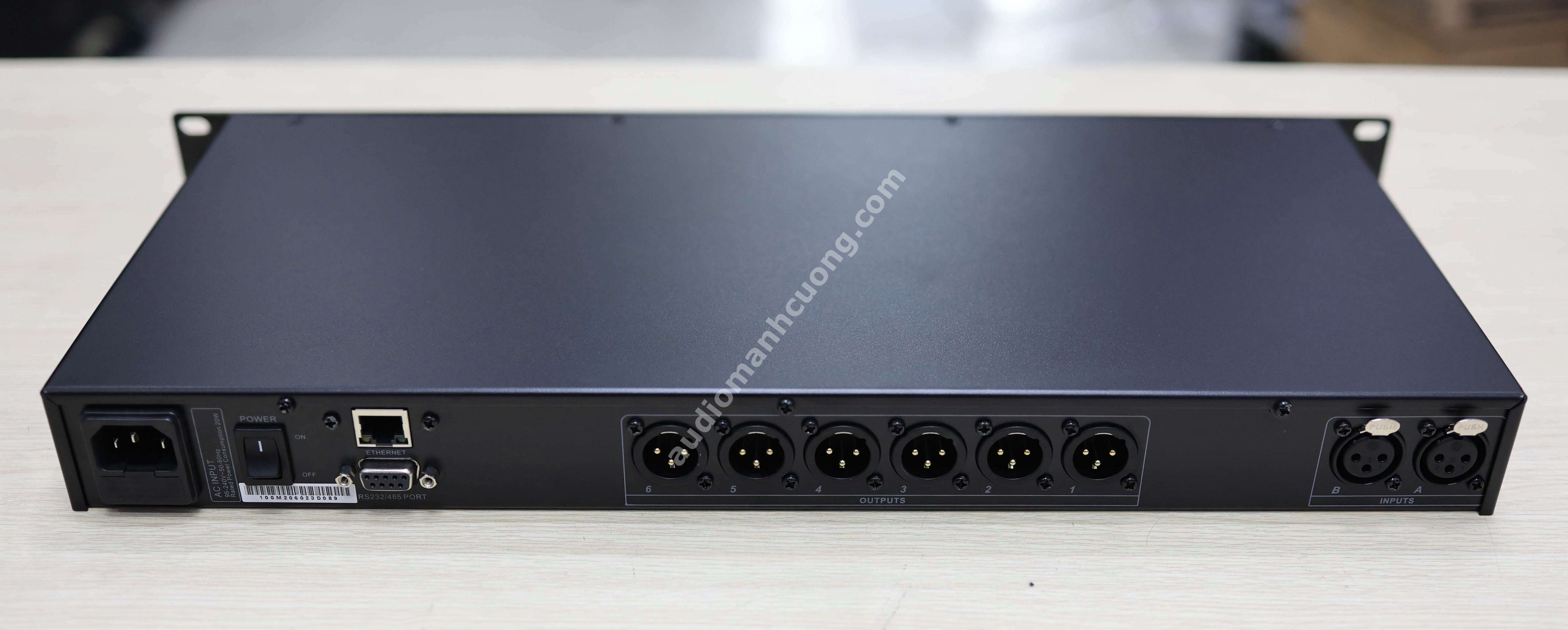 6 OUT (6 output): Số cổng tín hiệu ra, đủ để phân tần và xử lý riêng từng đường loa (sub, mid, treble…).