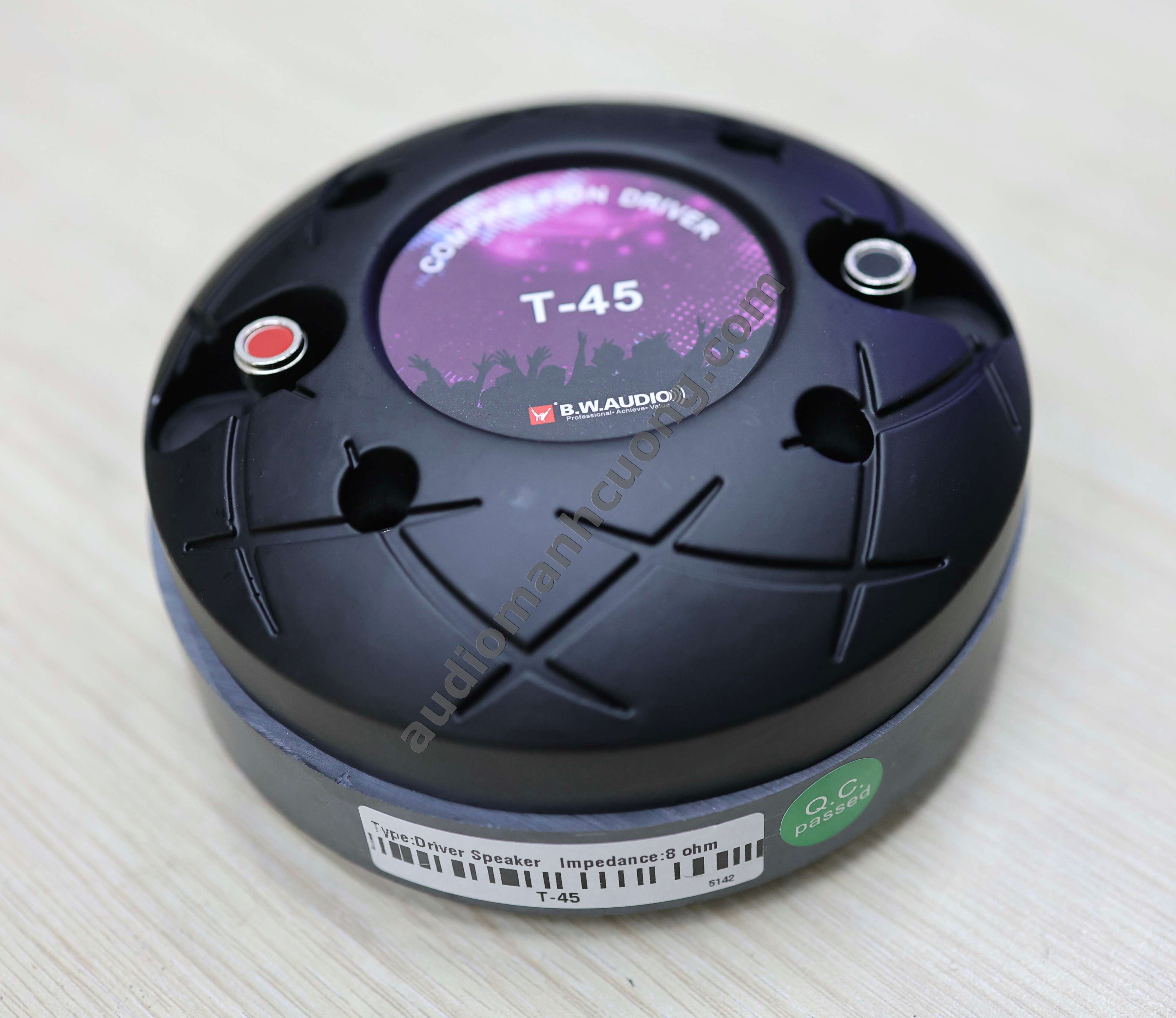 Treble B.W.Audio T45 là dòng treble nén chuyên nghiệp, coil 44mm, âm cao sáng rõ, không chói tai. Lý tưởng để nâng cấp hoặc thay thế cho loa karaoke, loa sân khấu 2 đường tiếng.