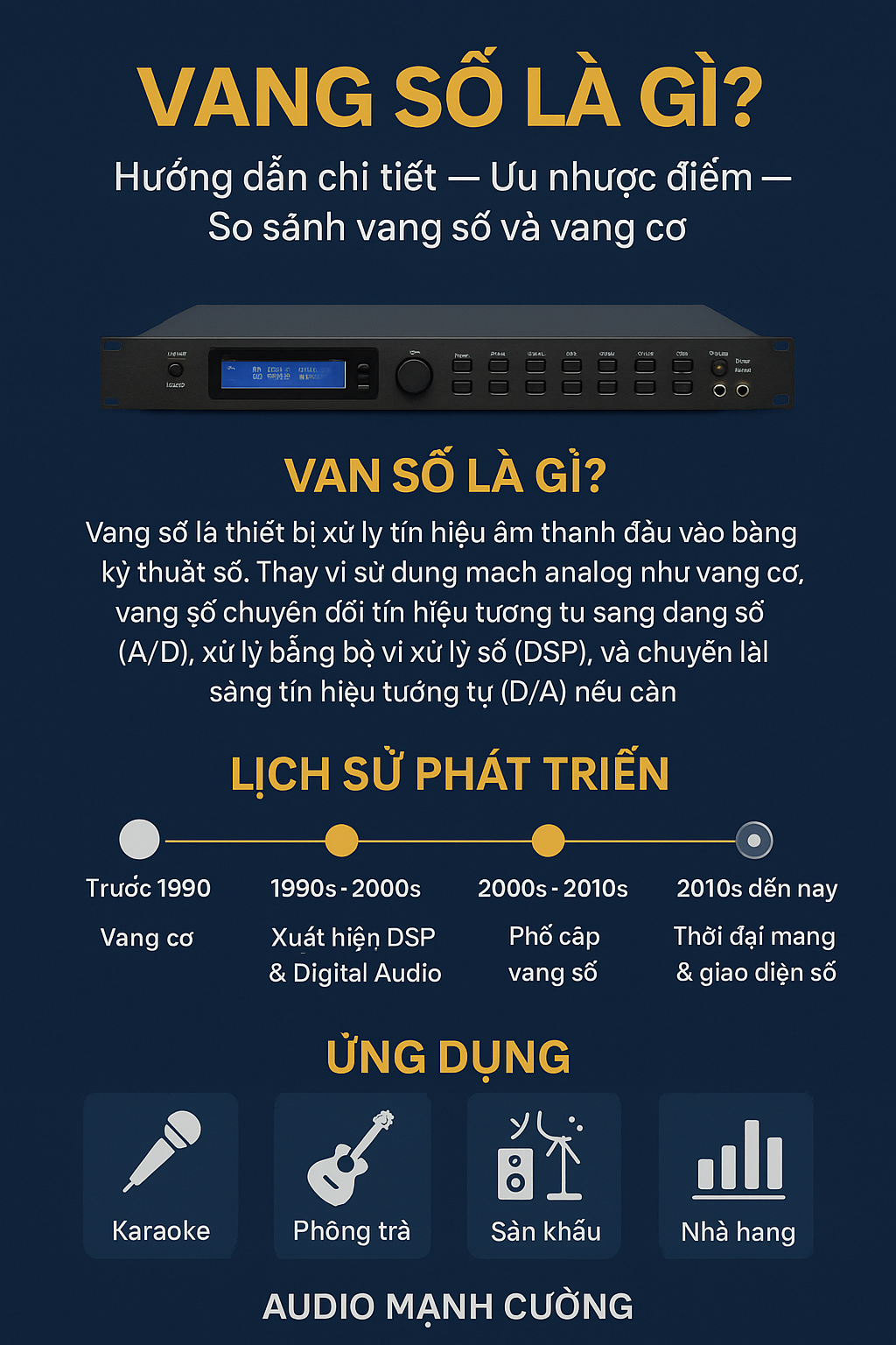 Vang số là gì? — Lịch sử, cấu tạo, ứng dụng và cách chọn vang số phù hợp cho dàn karaoke, sân khấu & phòng trà